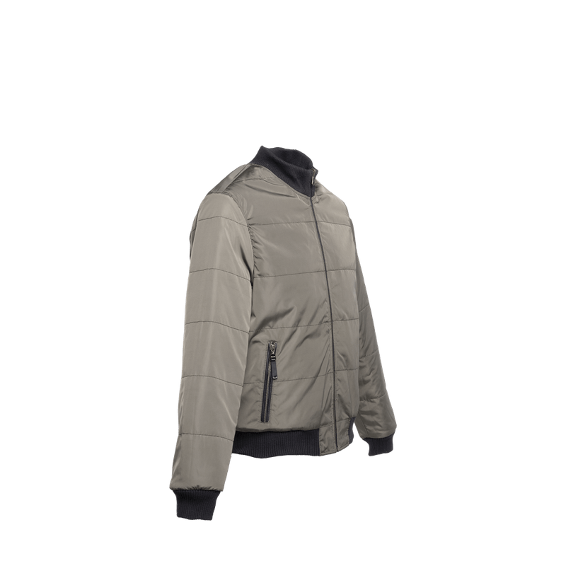 La chaqueta VITO es una prenda versátil que combina estilo y funcionalidad gracias a su diseño doble faz: por un lado, cuenta con un acabado en cuero que aporta carácter; por el otro, material textil en tono verde que le otorgan un aire casual.