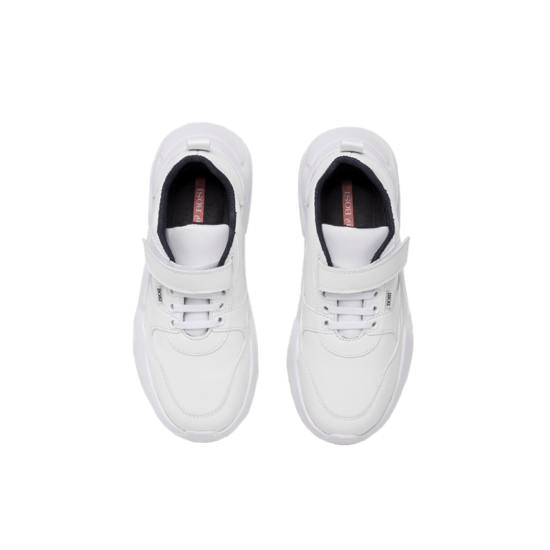Tenis para niño de la marca BOSI BAMBINO, confeccionados en materiales suaves, tienen un diseño clásico con textura de puntos y sutiles costuras, cuenta con un cierre de cordones elásticos que otorgan un óptimo ajuste y una banda de velcro en la parte superior que proporciona seguridad en cada paso, cuenta con un forro en textil, además una suela EVA la cual reduce el impacto del pie contra el suelo.